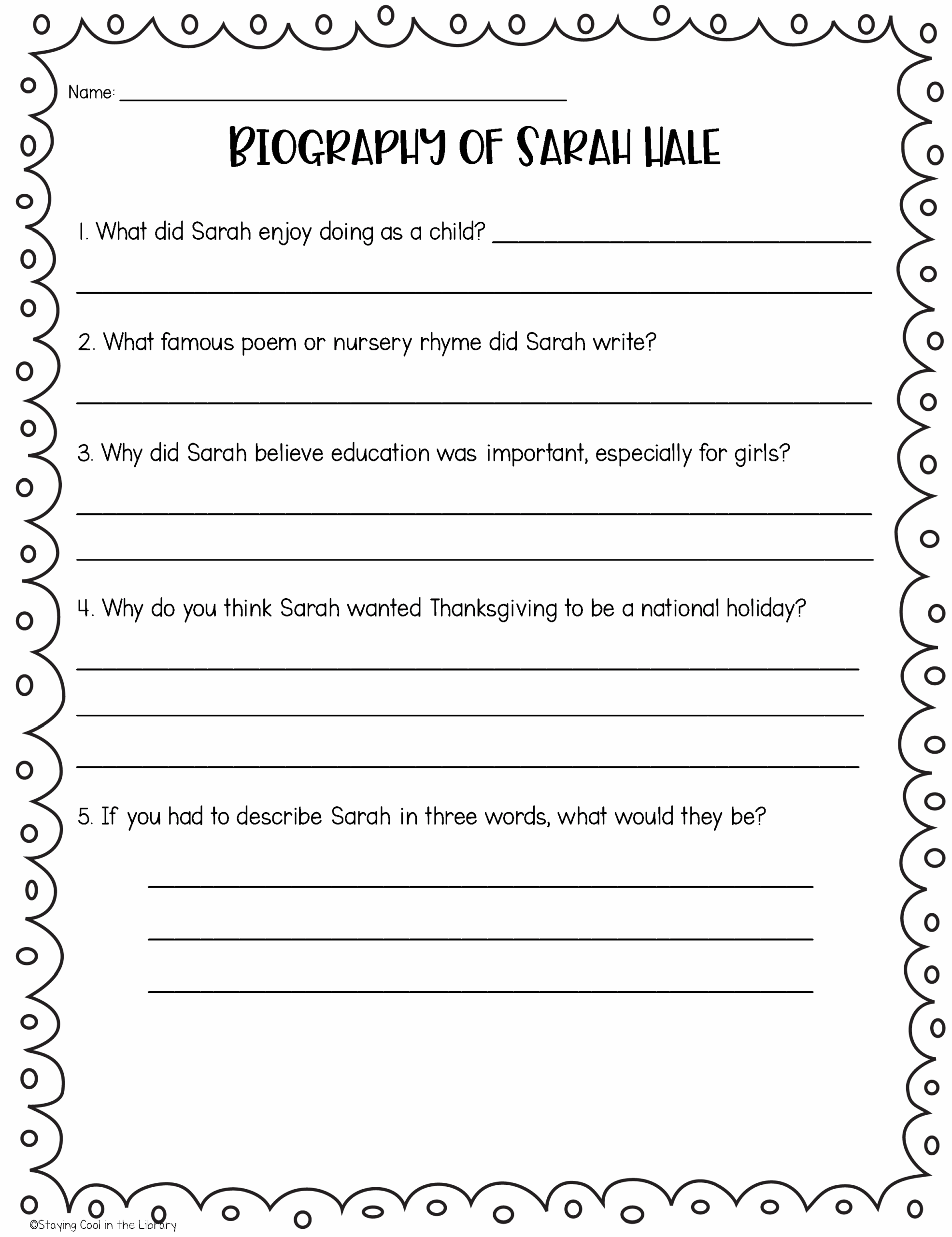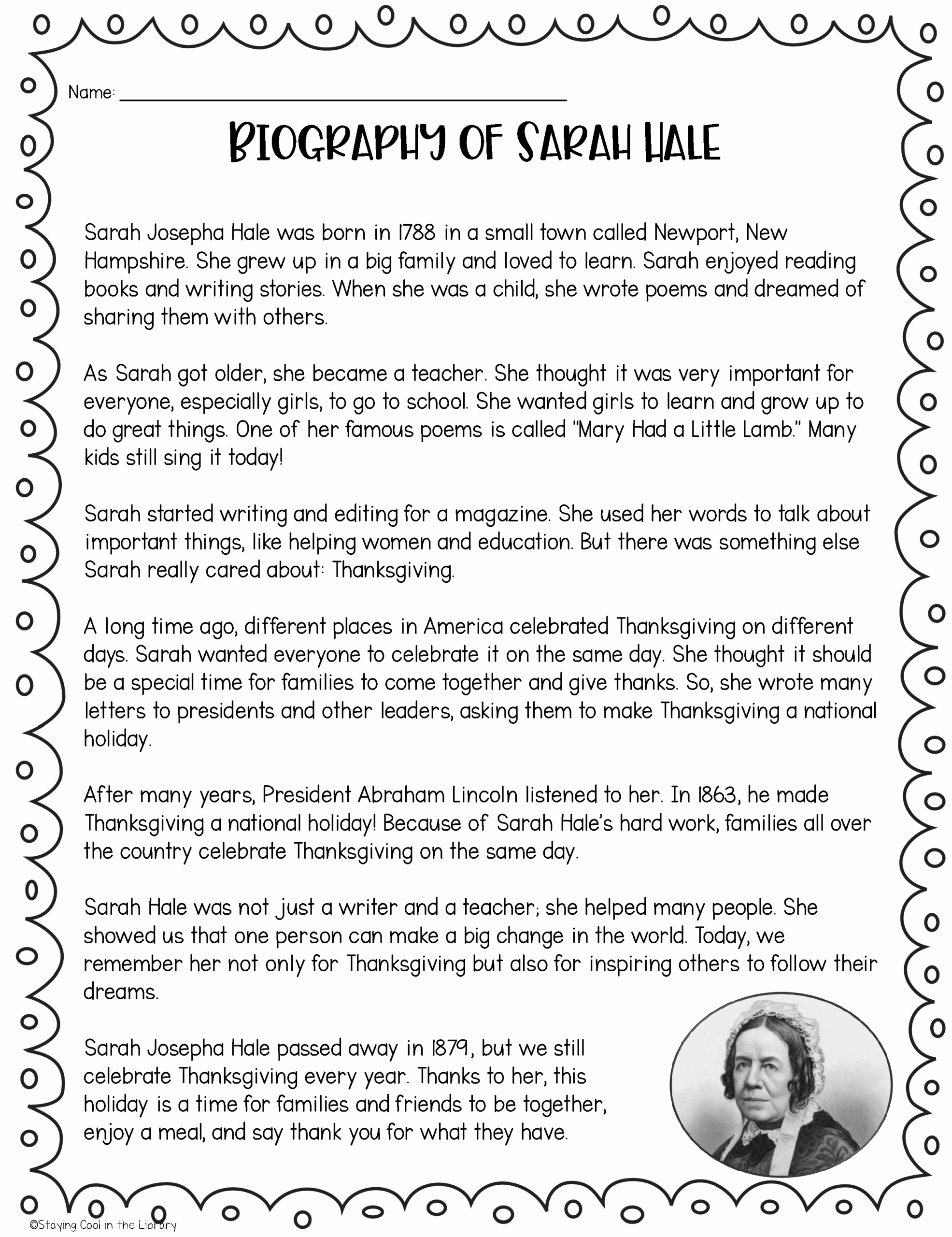 The differentiated biography pages are perfect for giving students background knowledge on Sarah Hale in a format they can access confidently. There are two leveled reading passages about Sarah’s life and contributions, each paired with corresponding comprehension questions. This makes it easy to support readers at different levels while still building essential nonfiction reading skills. These are great to use before or after reading the book, especially if you want to reinforce key facts and historical context.